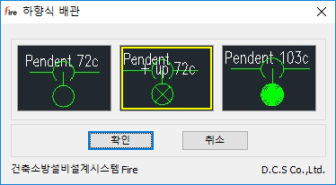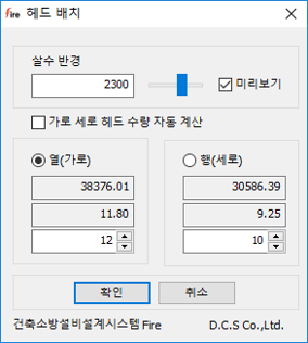 배치할 헤드 종류를 선택하고, 메인관을 지정한 후 배관할 헤드 마크 범위를 지정하면 헤드 마크 위치에 스프링클러 헤드가 배치되며 자동으로 메인관과 배관된다.