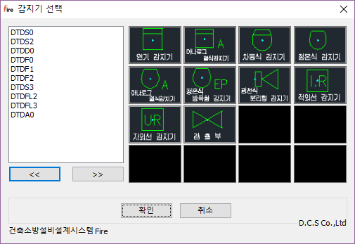 ▲감지기 선택 화면 및 배치 방법 옵션 창