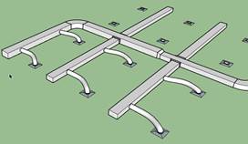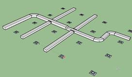 덕트를 쉽게 모델링할 수 있는 덕트 모델러입니다. 바닥 띄우기를 입력하고 사이즈를 선택한 후 선을 그리 듯 경로를 지정하면서 모델링합니다. 디퓨져 배치, 터닝베인, 댐퍼류, 소음기 등 각종 액세서리 삽입 기능이 있습니다.